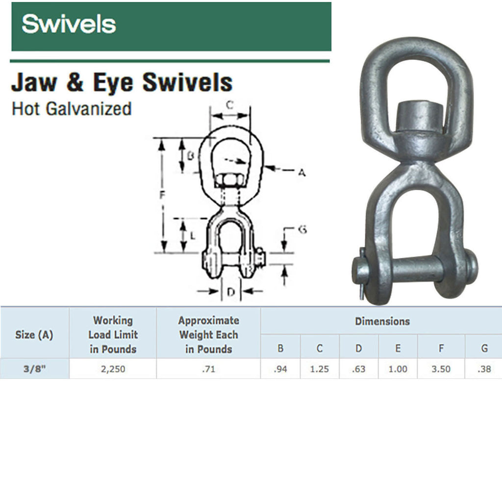 - 1/4", 5/16", 3/8", 1/2", 5/8", 3/4", 1" Galvanized JAW EYE Marine Mooring Swivel