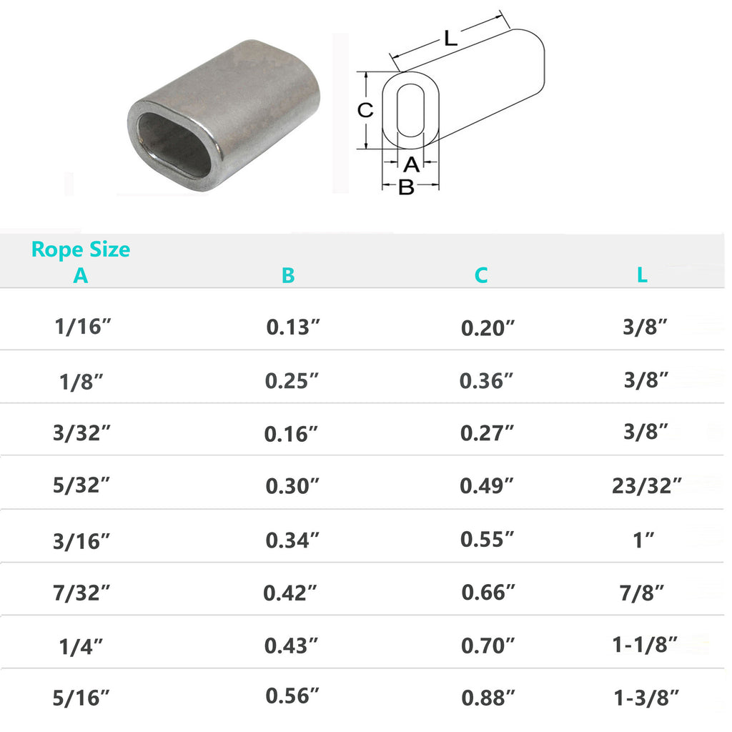 - 10 Pc Set Marine Stainless Steel T316 Wire Rope Oval Sleeve Wire Rope Sleeves