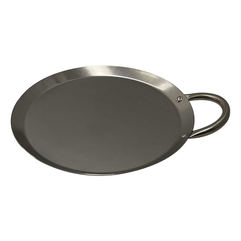 - 11" Stainless Steel Round Serving Platter Ottoman Tray with Side Handle