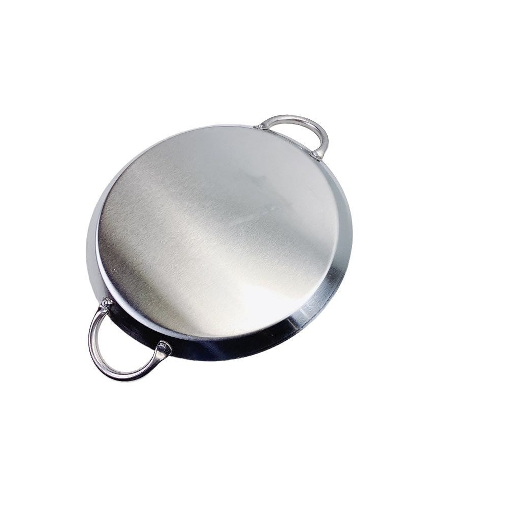 - 14'' Stainless Steel Round Serving Platter Ottoman Tray with Handles