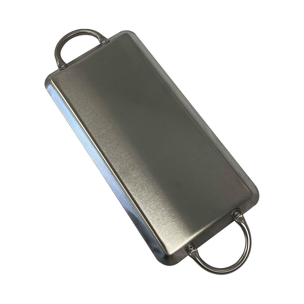 - 21-1/2'' Stainless Steel Rectangular Serving Platter Ottoman Tray with Handles