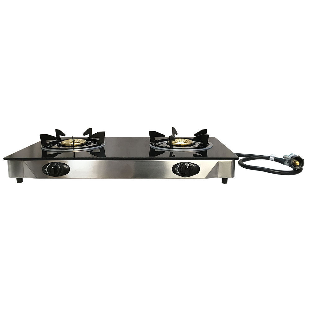 - Double Stainless Steel Body Tempered Glass Top Burner