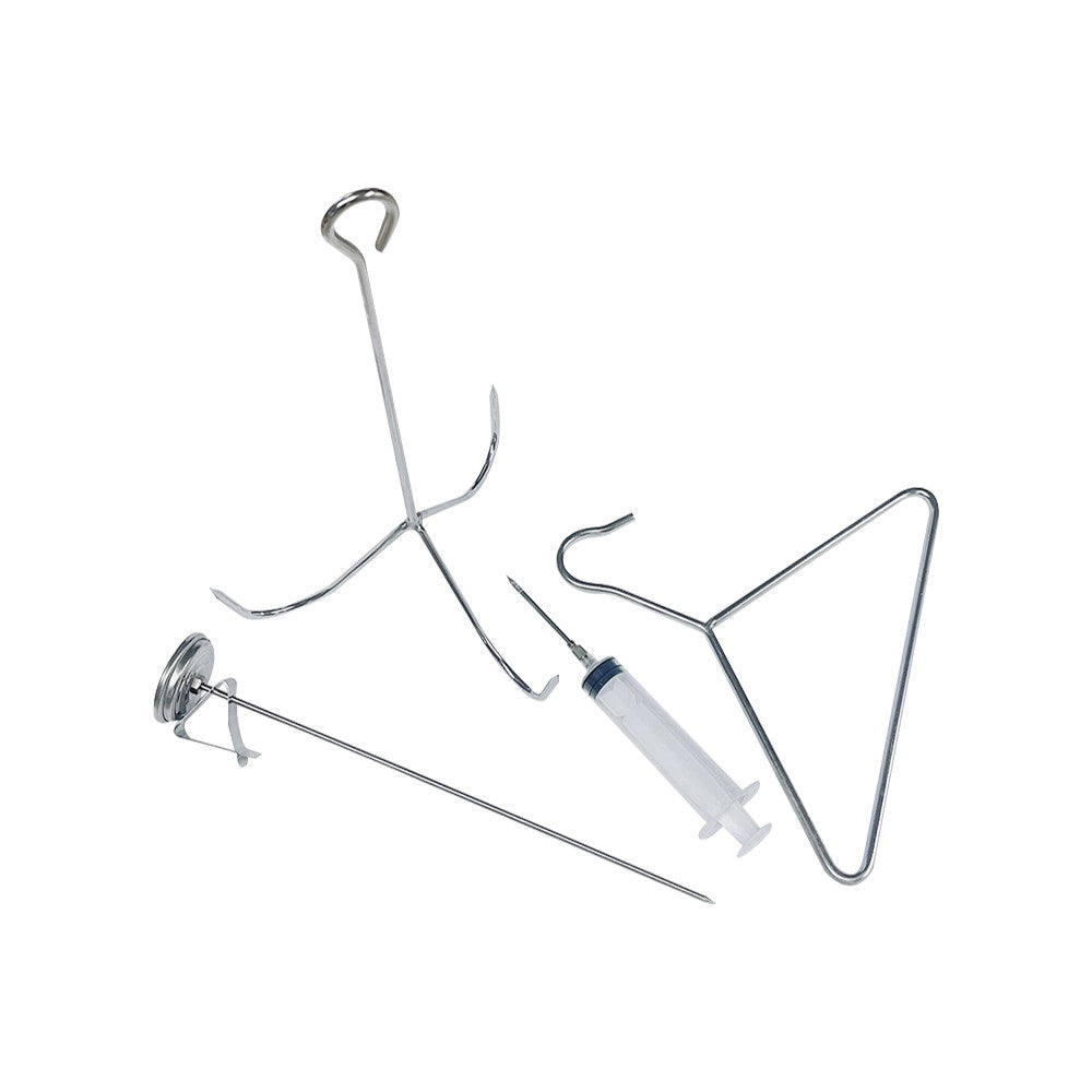 - Turkey Holder, Thermometer, And Meat Injection Included