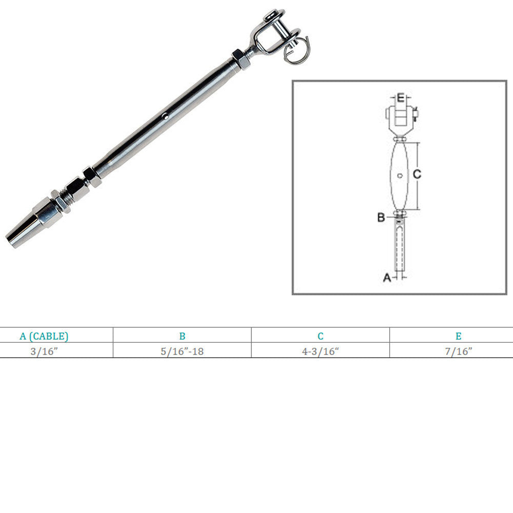- 4 Pc 3/16'' Jaw And Swageless Turnbuckle
