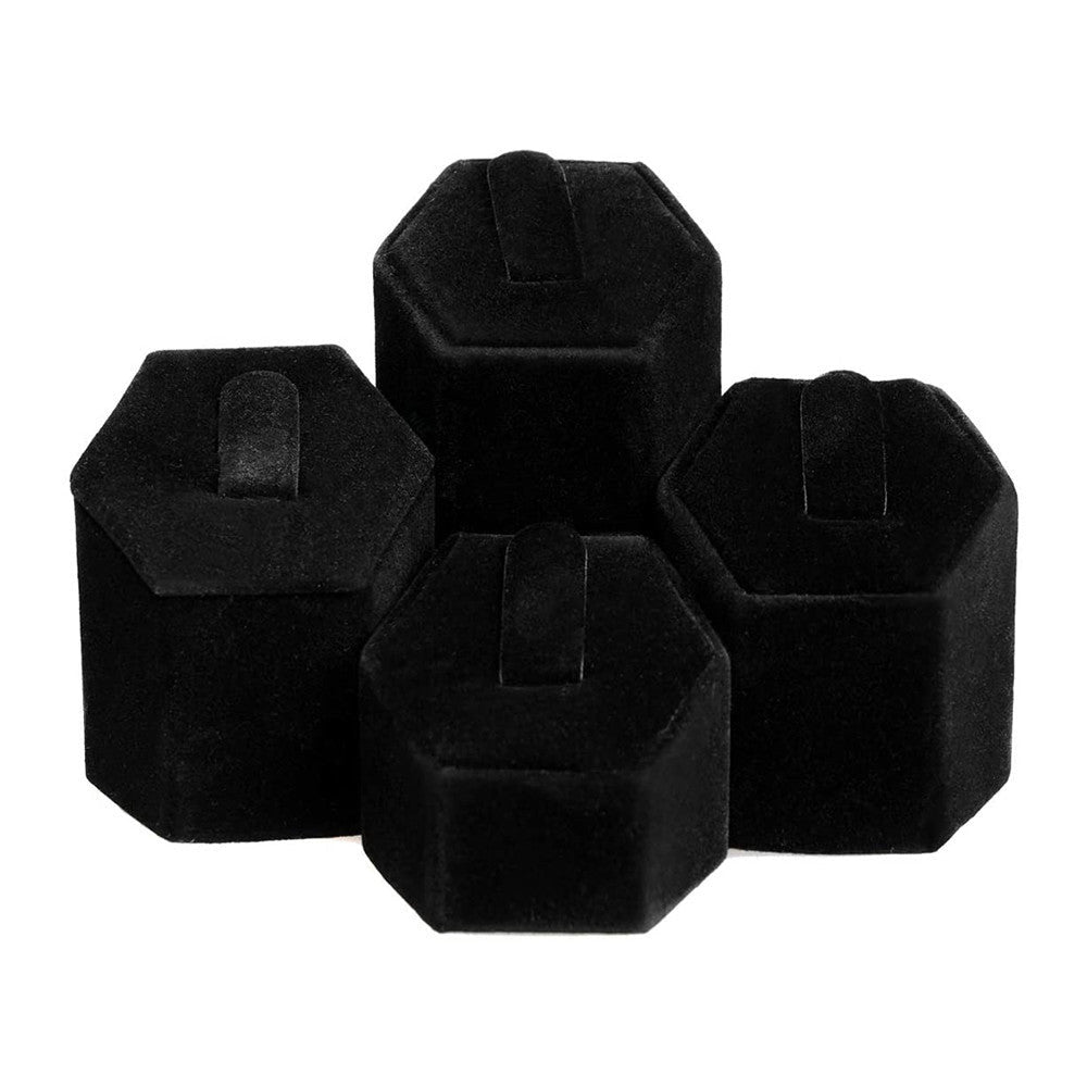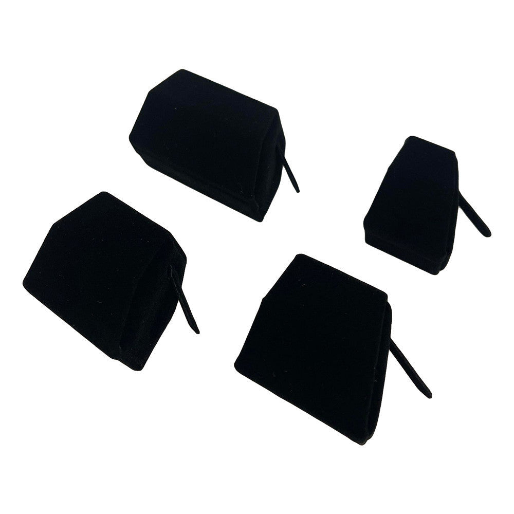 - 4 Ring Black Velvet Pedestal Jewelry Display Set With Metal Ring Clips