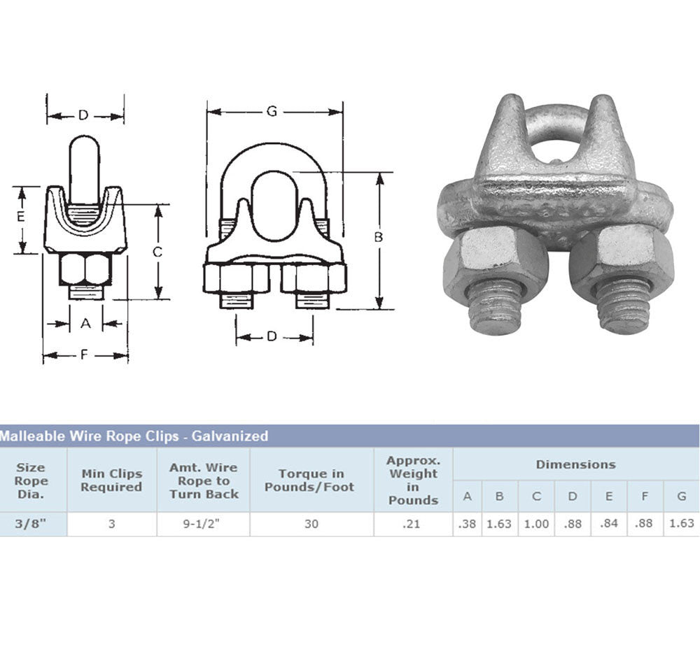 - 40 Pc Galvanized Drop Forged Wire Rope Clips