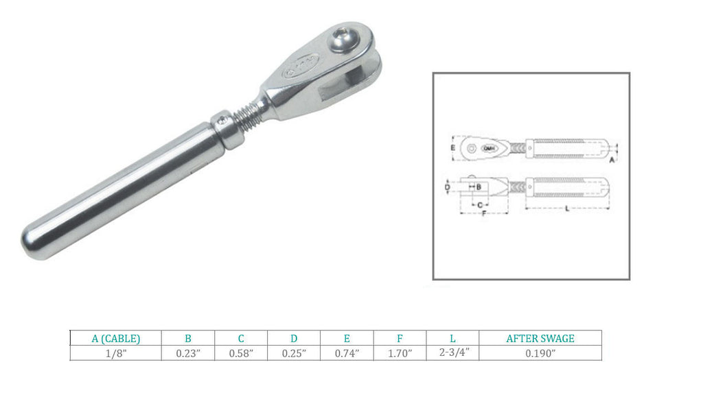 4Pcs Marine 316 Stainless Steel 1/8" Cable Streamline Adjustable Jaw Cable Rail