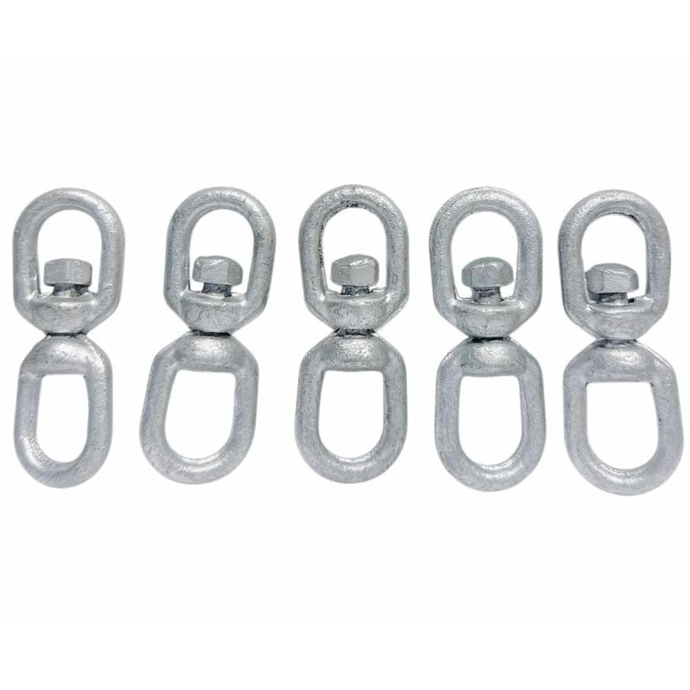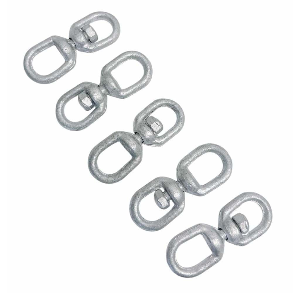 5 Pc 1/4" Galvanized Eye to Eye Swivel for Marine Mooring, 850 lbs Load Capacity