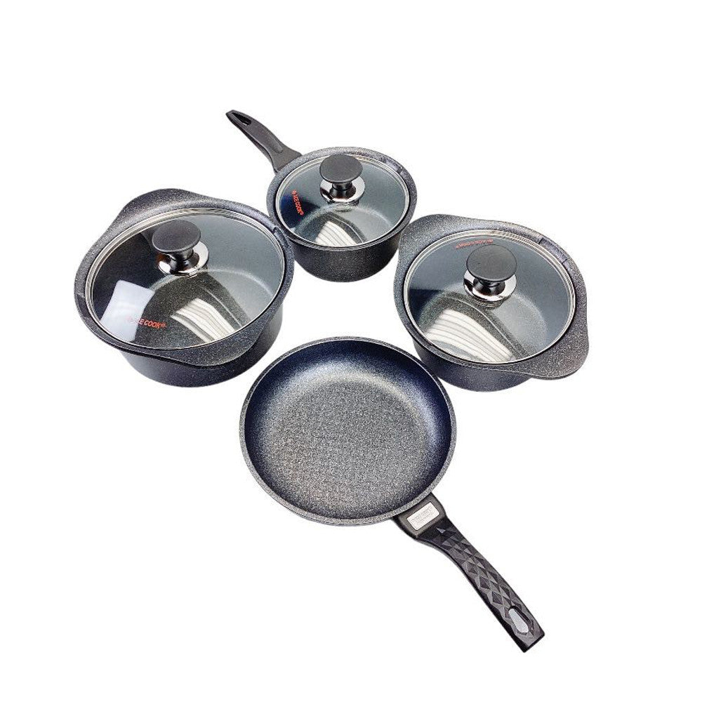- Quantity: 1 Set (3 Sauce Pots, 3 Sauce Pot Lids, 1 Fry Pan)