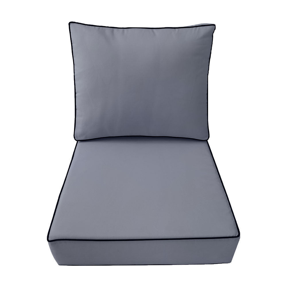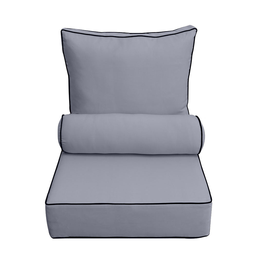 Small Size 23x24x6 Contrast Trim Outdoor Deep Seat Backrest Cushion with Bolster, Water Repellent Patio Cushion Insert and Cover Set AD001