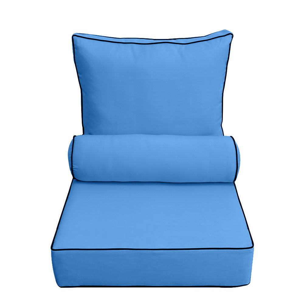 Small Size 23x24x6 Contrast Trim Outdoor Deep Seat Backrest Cushion with Bolster, Water Repellent Patio Cushion Insert and Cover Set AD102