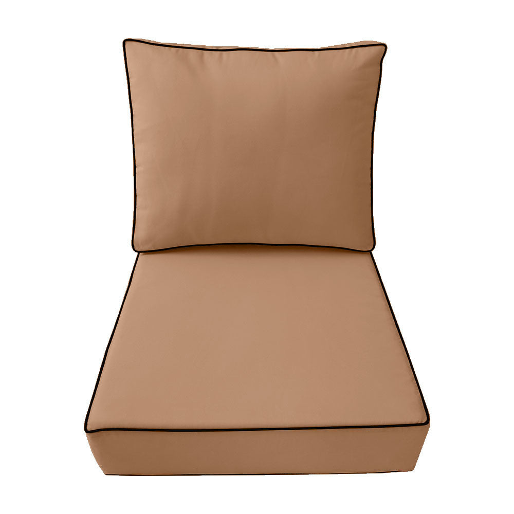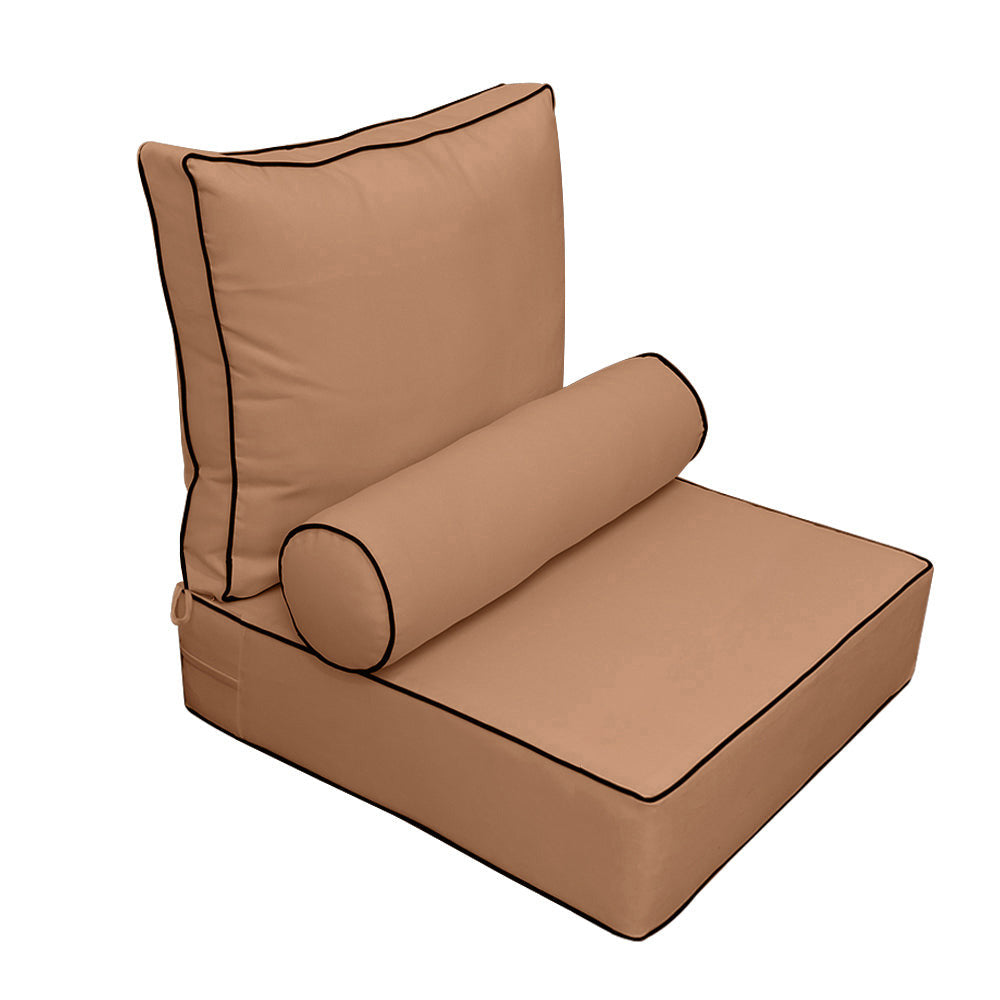 Small Size 23x24x6 Contrast Trim Outdoor Deep Seat Backrest Cushion with Bolster, Water Repellent Patio Cushion Insert and Cover Set AD104