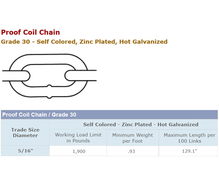 • Grade 30 Proof Coil Chain Hot Dip Galvanized Steel 5/16" x 100' Ft