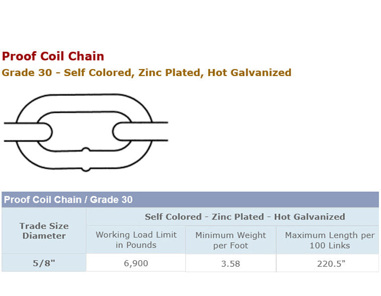 • Grade 30 Proof Coil Chain Hot Dip Galvanized Steel 5/8" x 150' Ft