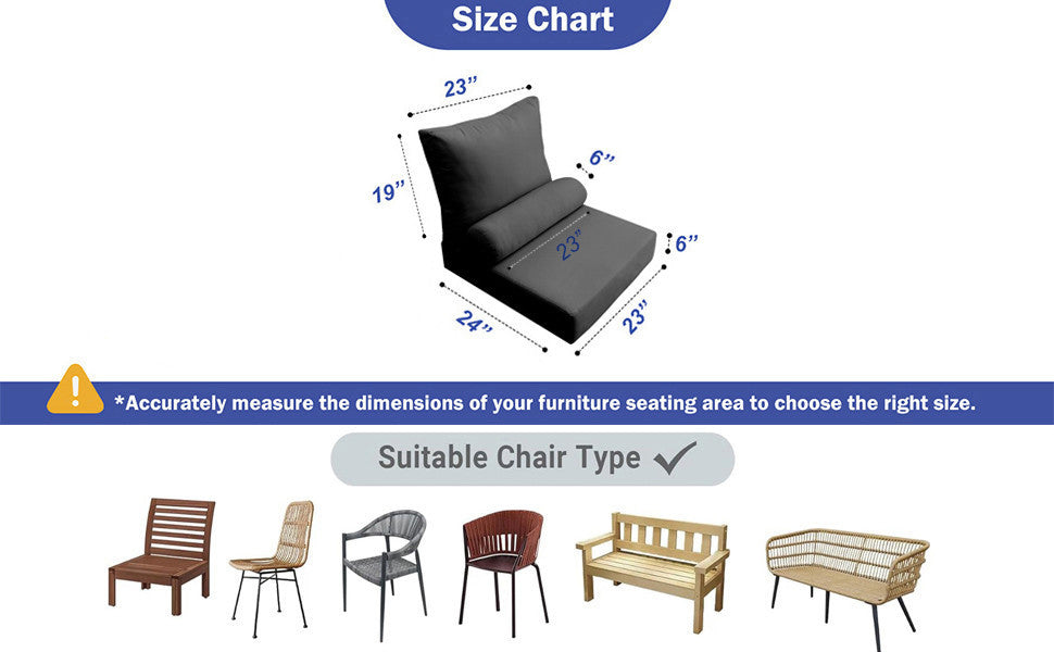 Small Size 23x24x6 Knife Edge Outdoor Deep Seat Backrest Cushion with Bolster, Water Repellent Patio Cushion Insert and Cover Set AD105