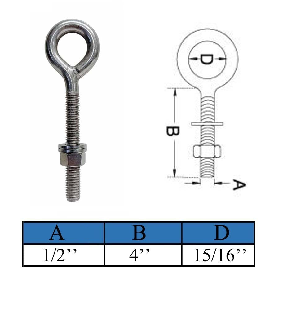 - Formed and Welded 1/2'' x 4'' Plain Eye Bolt