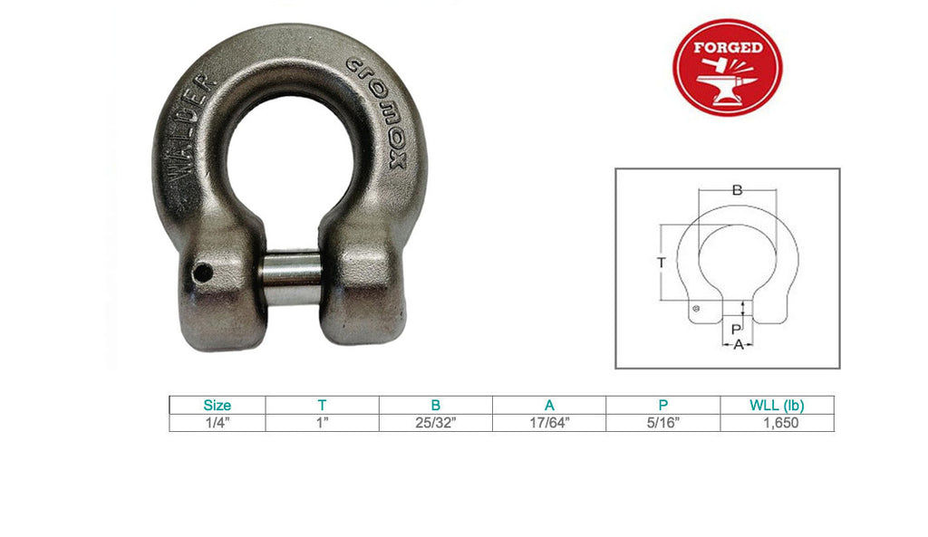 Marine Boat T318 LN Stainless Steel 1/4" G60 Clevis Shackle 1650 Lb WLL Rig Lift