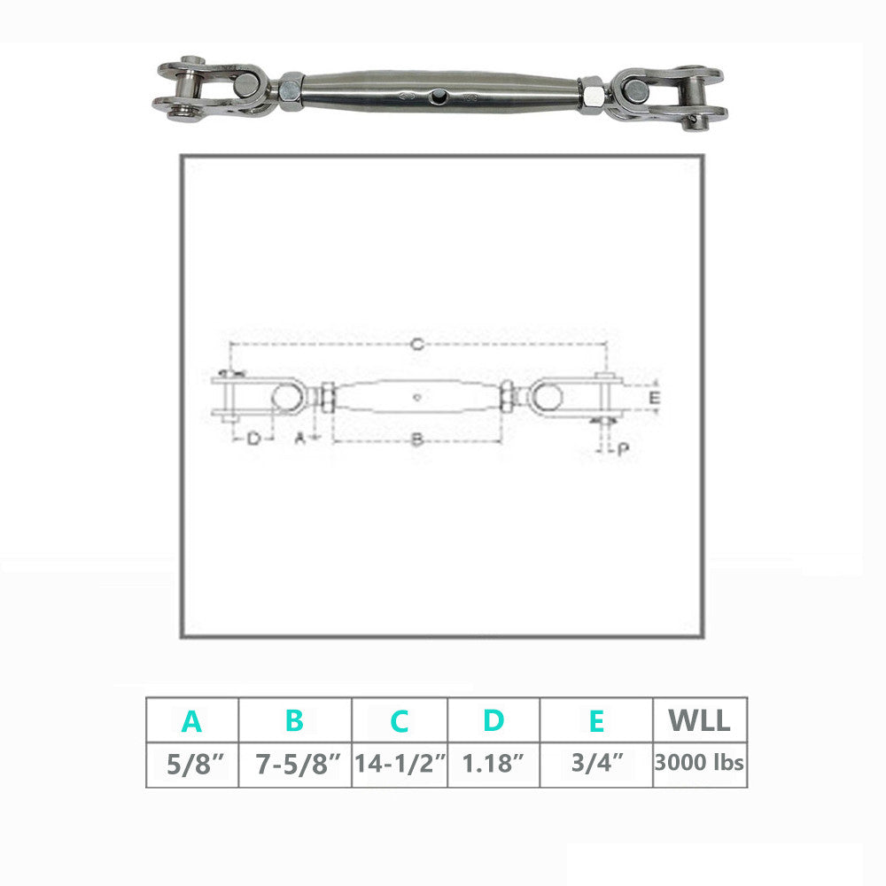 - Turnbuckle Body Length: 7-5/8'' *Estimate Only*