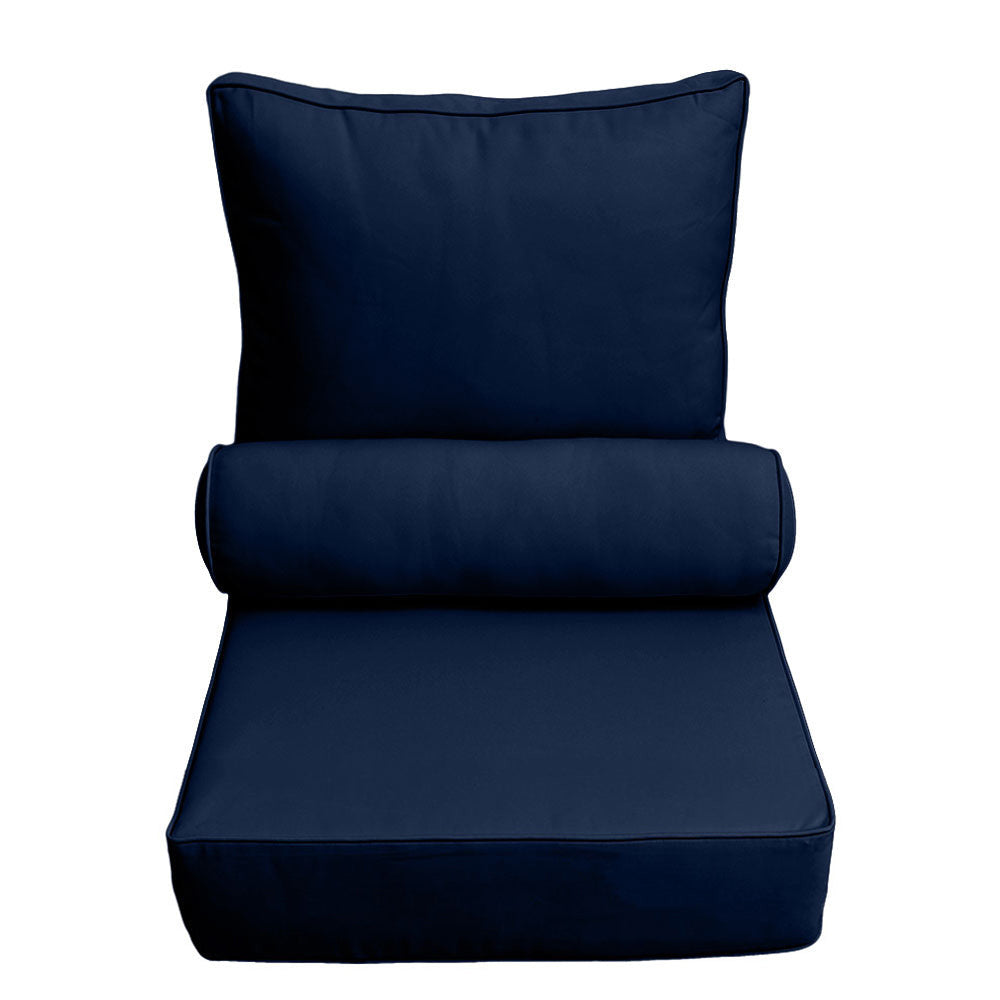 Medium Size 24x26x6 Piped Trim Outdoor Deep Seat Backrest Cushion with Bolster, Water Repellent Patio Cushion Insert and Cover Set AD101