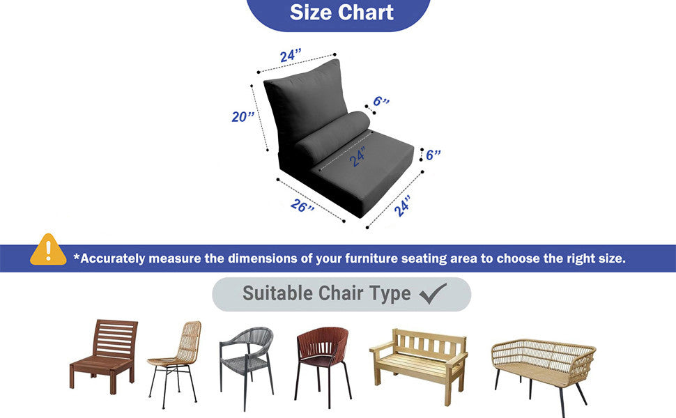 Medium Size 24x26x6 Piped Trim Outdoor Deep Seat Backrest Cushion with Bolster, Water Repellent Patio Cushion Insert and Cover Set AD106