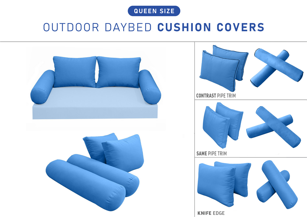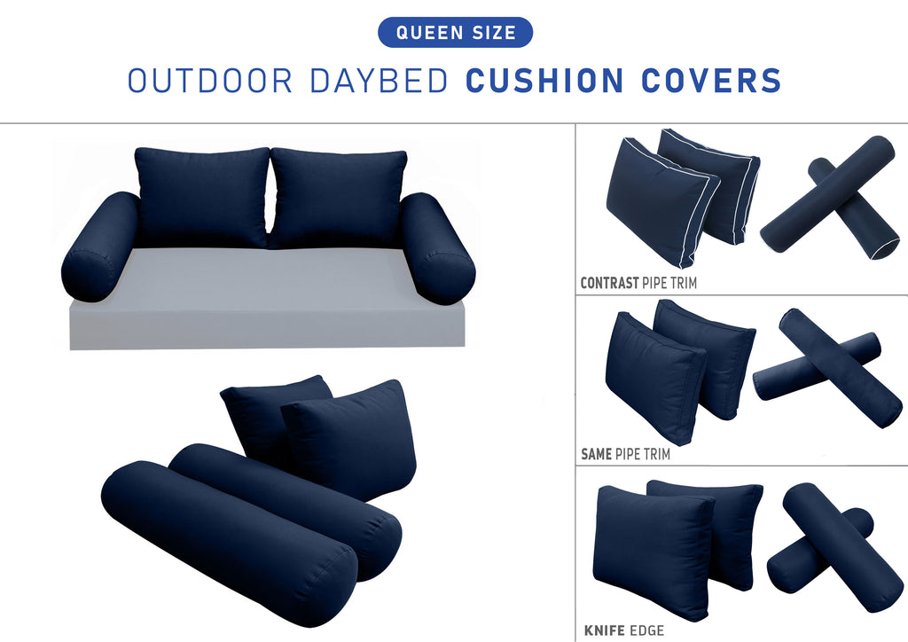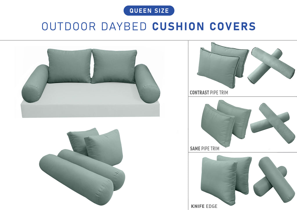STYLE 1 Pillow & Bolster Cushion for Outdoor Indoor Daybed Porch Swing Bed Queen Size | COVERS ONLY |