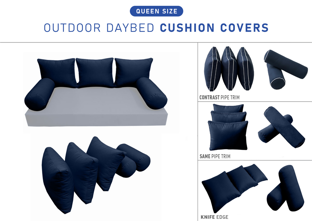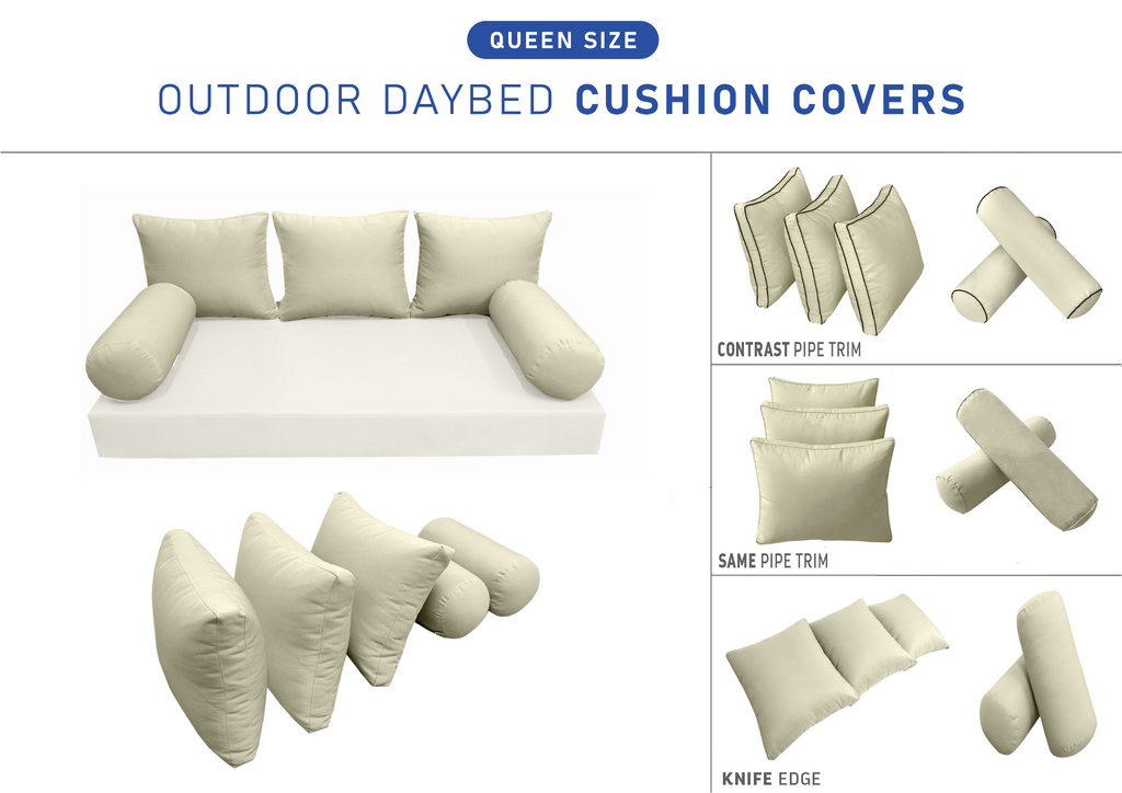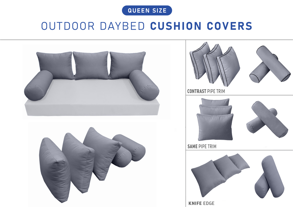 STYLE 3 Pillow & Bolster Cushion for Outdoor Indoor Daybed Porch Swing Bed Queen Size | COVERS ONLY |