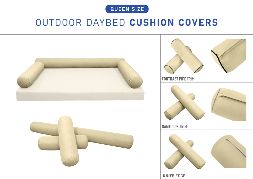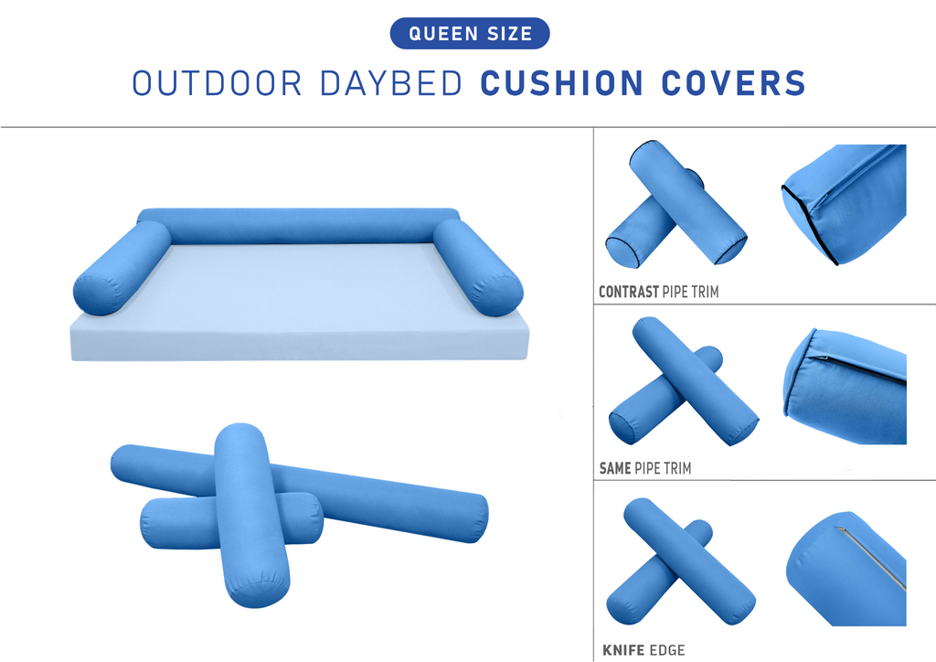 STYLE 6 - Bolster Pillow for Outdoor Indoor Daybed Porch Swing Bed Queen Size | COVERS ONLY |