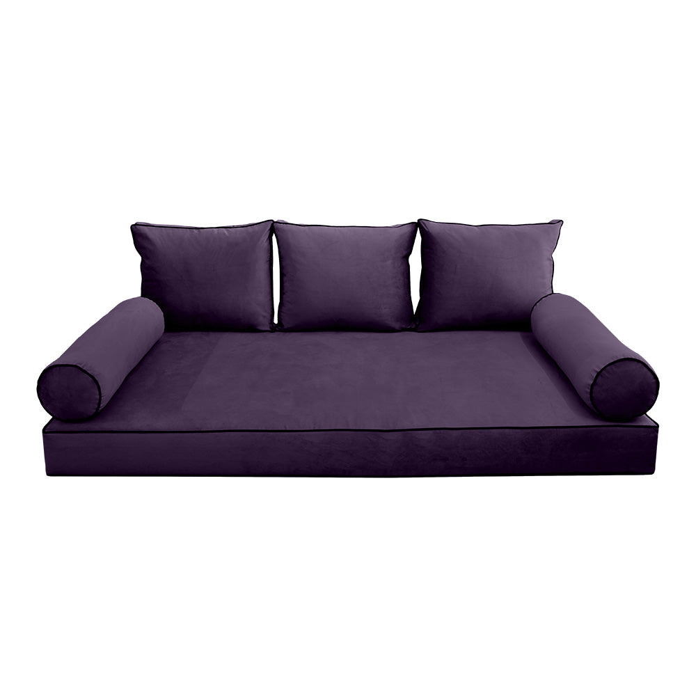 STYLE V3 - Velvet Indoor Daybed Mattress Bolster Backrest Cushion Pillow Complete Set