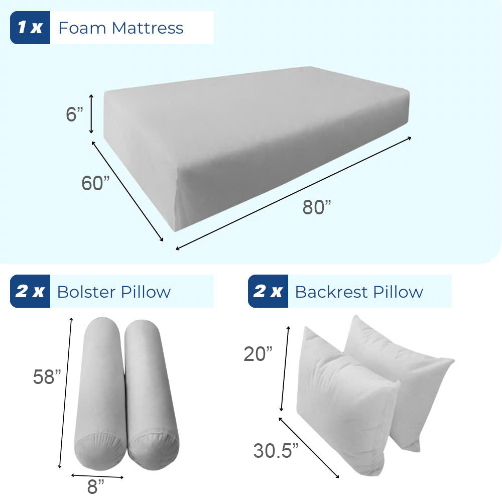 • STYLE 1 - Patio Daybed Mattress Foam, Bolster & Back Pillow Insert Set