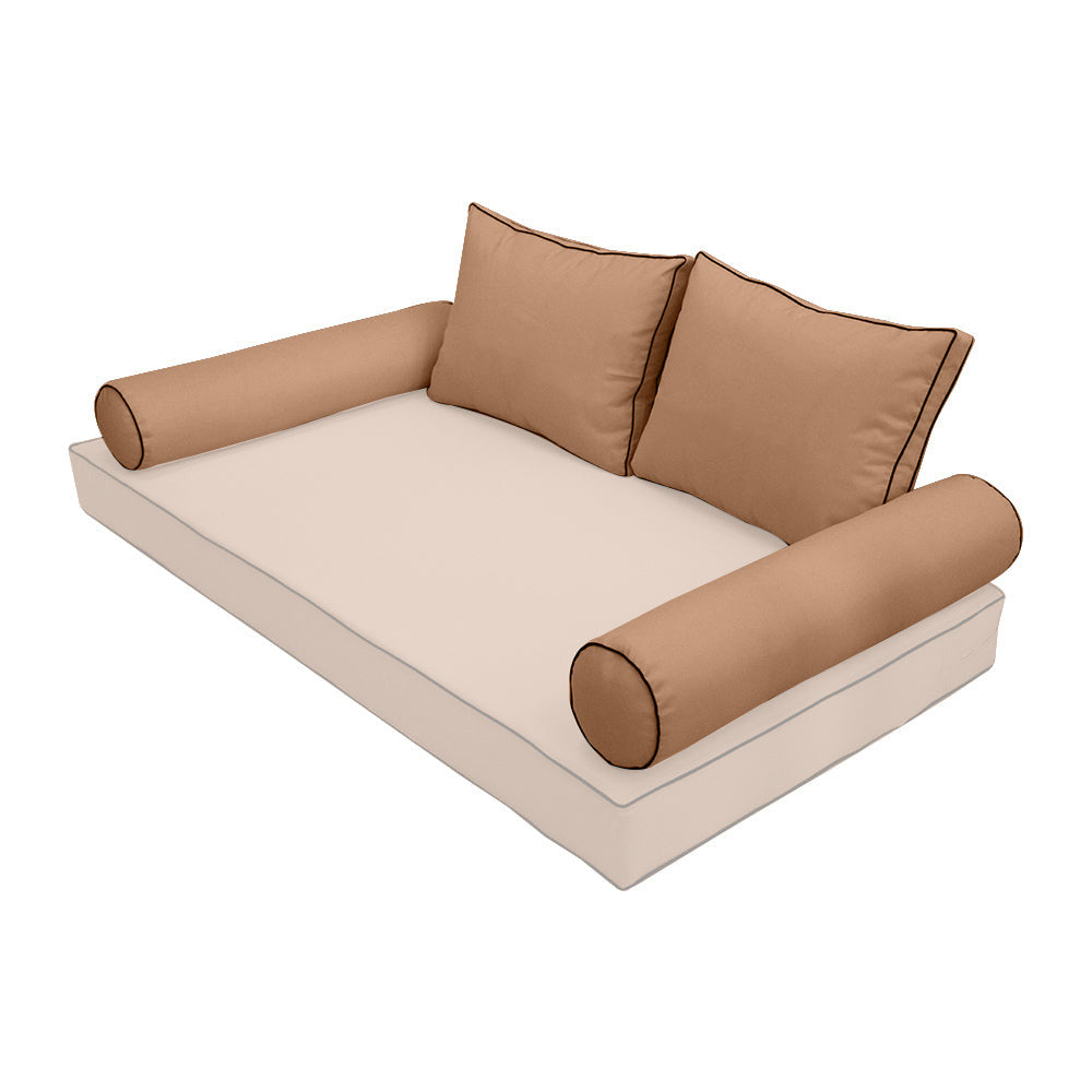STYLE 1 Pillow & Bolster Cushion for Outdoor Indoor Daybed Porch Swing Bed Twin Size Contrast Trim AD104 | COVERS ONLY |