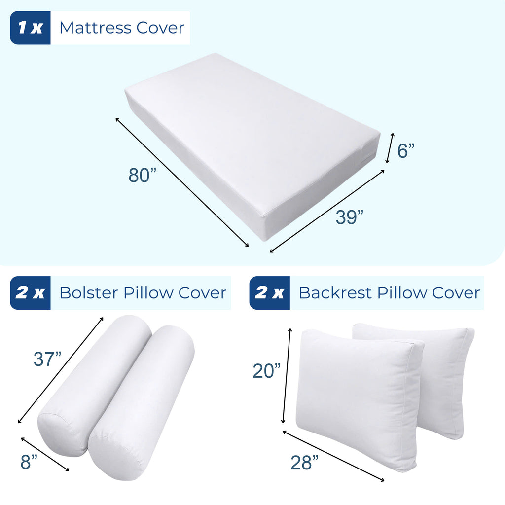 STYLE 1 - Mattress & Pillow Bolster Cushion for Outdoor Indoor Daybed Porch Swing Bed Piped Trim Twin-XL Size AD104 | COVERS ONLY |