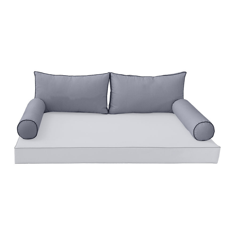 STYLE 2 Pillow & Bolster Cushion for Outdoor Indoor Daybed Porch Swing Bed Crib Size Contrast Trim AD001 | COVERS ONLY |