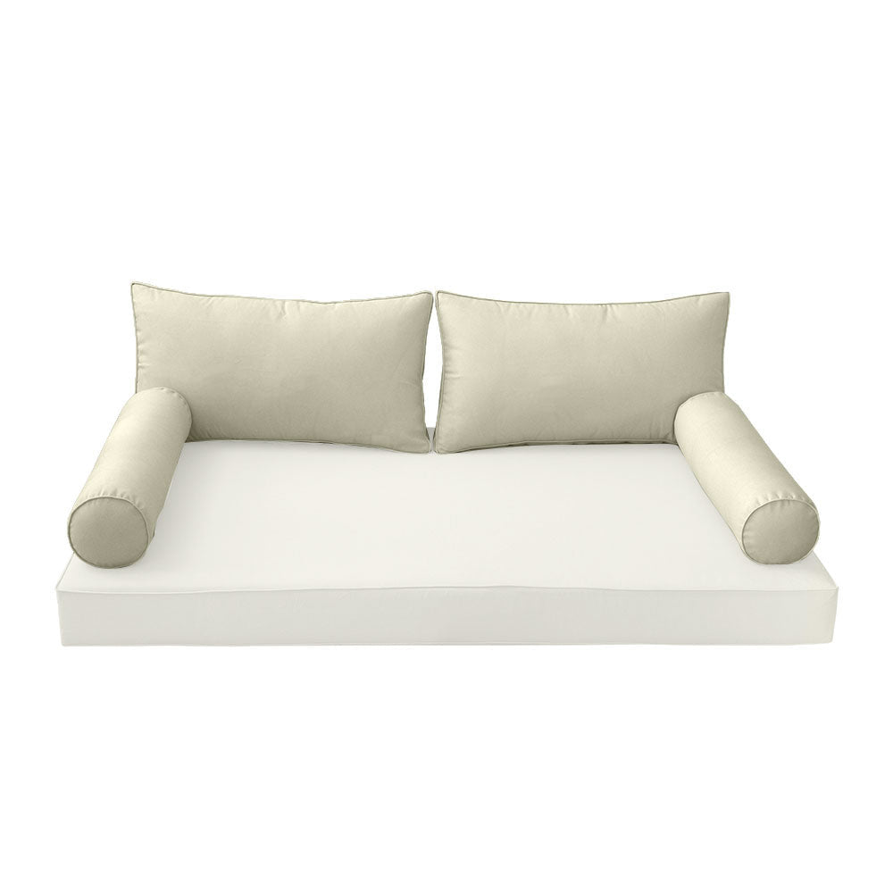 STYLE 2 Pillow & Bolster Cushion for Outdoor Indoor Daybed Porch Swing Bed Full Size Piped Trim AD005 | COVERS ONLY |