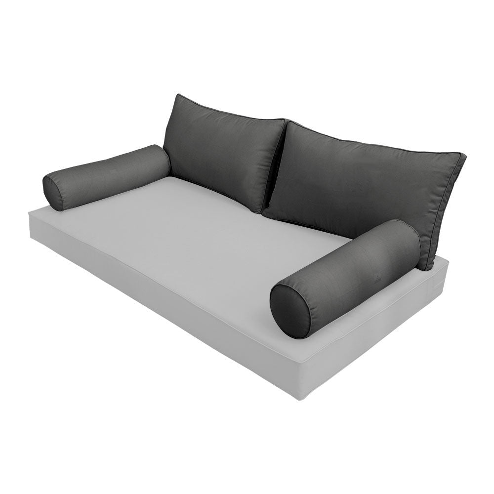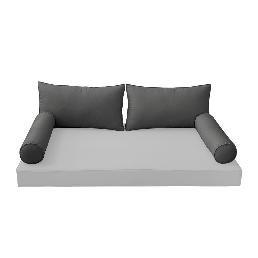 STYLE 2 Pillow & Bolster Cushion for Outdoor Indoor Daybed Porch Swing Bed Queen Size Piped Trim AD003 | COVERS ONLY |