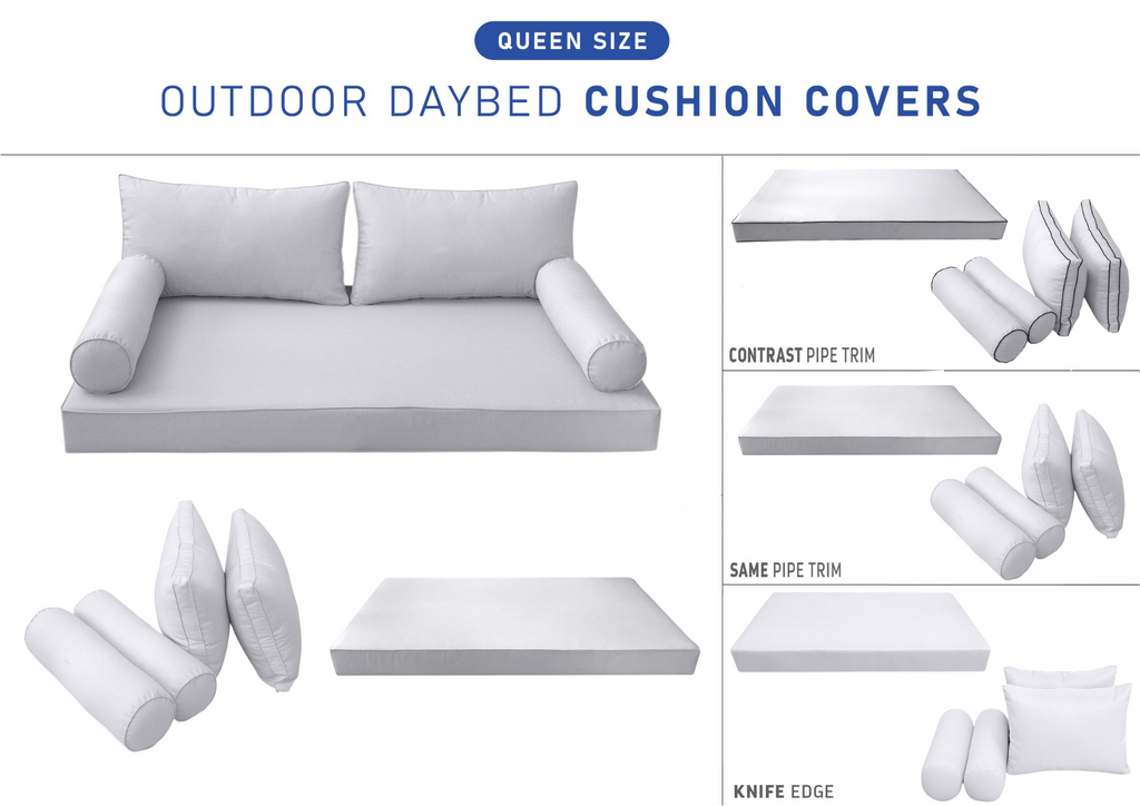 STYLE 2 - Mattress & Pillow Bolster Cushion for Outdoor Indoor Daybed Porch Swing Bed Queen Size | COVERS ONLY |