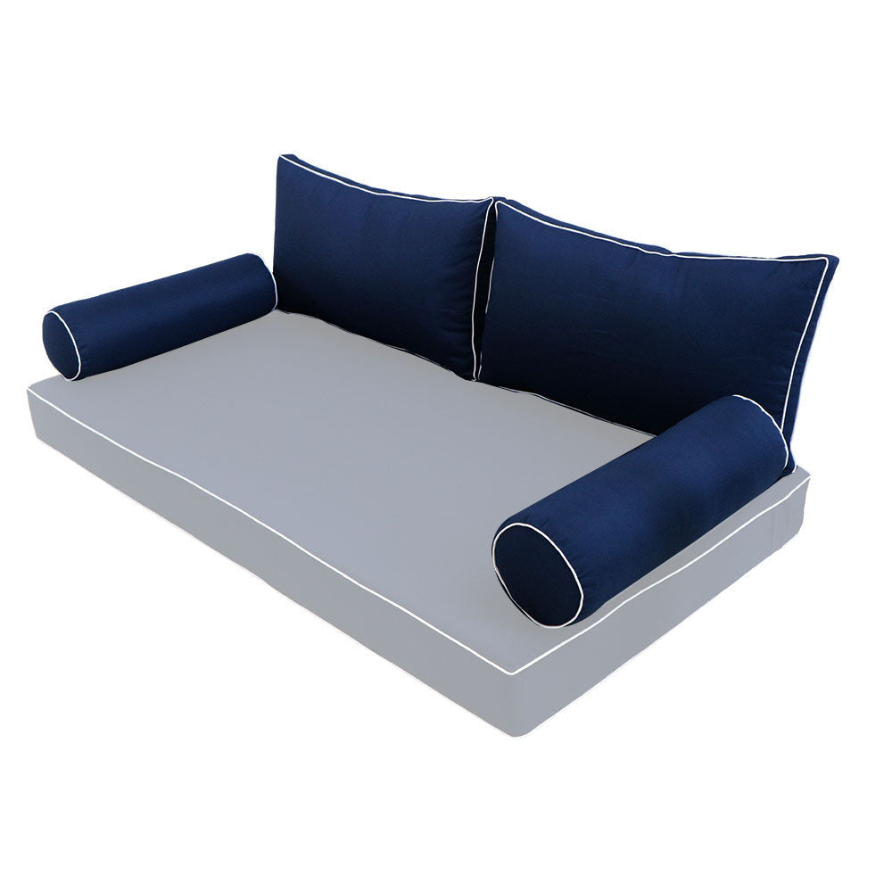 STYLE 2 Pillow & Bolster Cushion for Outdoor Indoor Daybed Porch Swing Bed Twin Size Contrast Trim AD101 | COVERS ONLY |