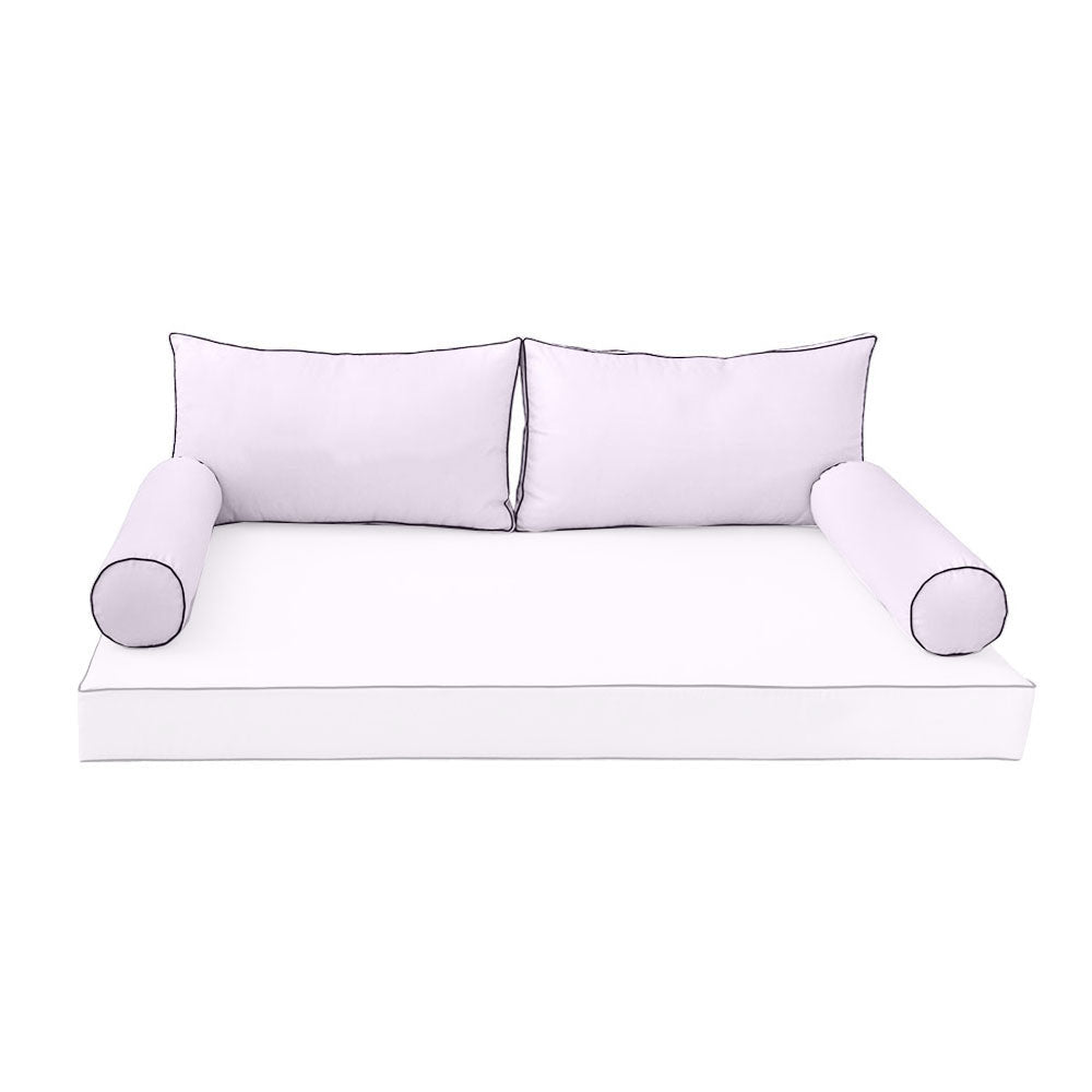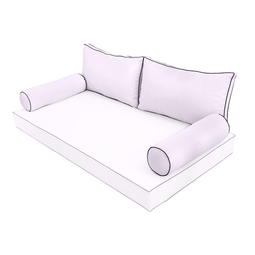 STYLE 2 Pillow & Bolster Cushion for Outdoor Indoor Daybed Porch Swing Bed Twin Size Contrast Trim AD107 | COVERS ONLY |