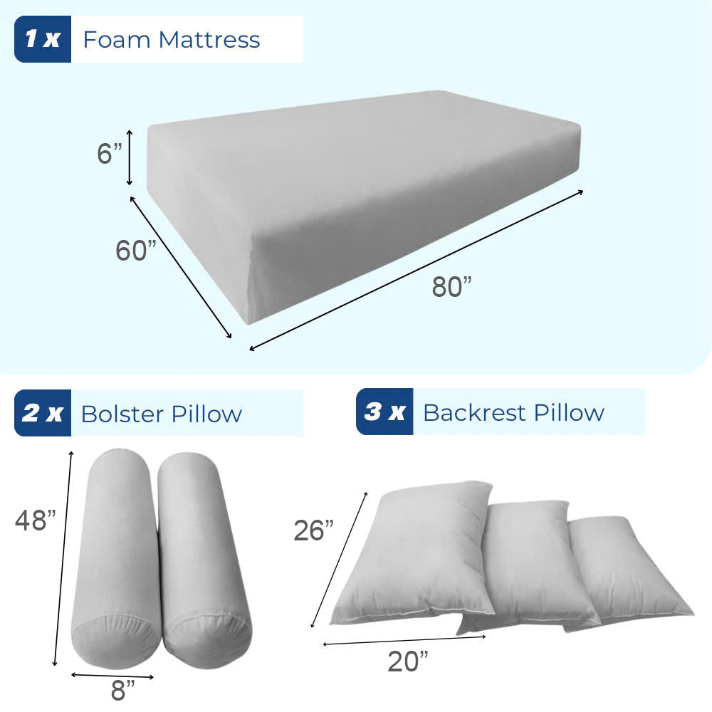 - STYLE 3 - Patio Daybed Mattress Foam, Bolster & Back Pillow Insert Set