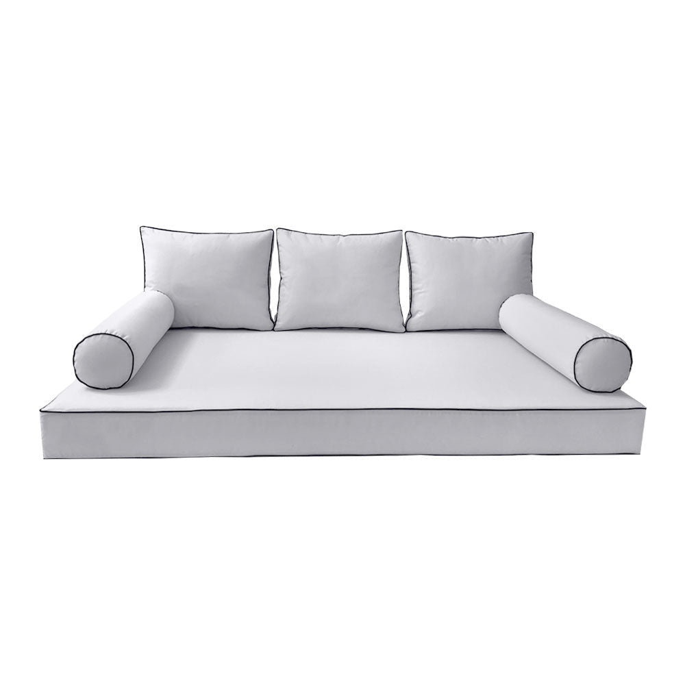 STYLE 3 - Mattress & Pillow Bolster Cushion for Outdoor Indoor Daybed Porch Swing Bed Contrast Trim Crib Size AD105 | COVERS ONLY |