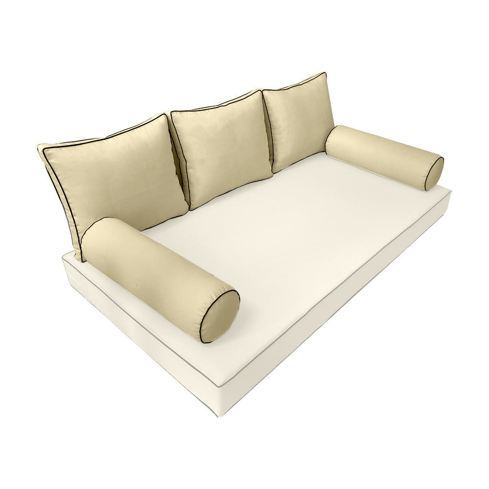 STYLE 3 Pillow & Bolster Cushion for Outdoor Indoor Daybed Porch Swing Bed Full Size Contrast Trim AD103 | COVERS ONLY |