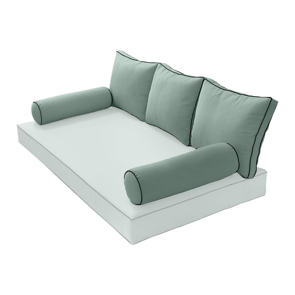 STYLE 3 Pillow & Bolster Cushion for Outdoor Indoor Daybed Porch Swing Bed Queen Size Contrast Trim AD002 | COVERS ONLY |