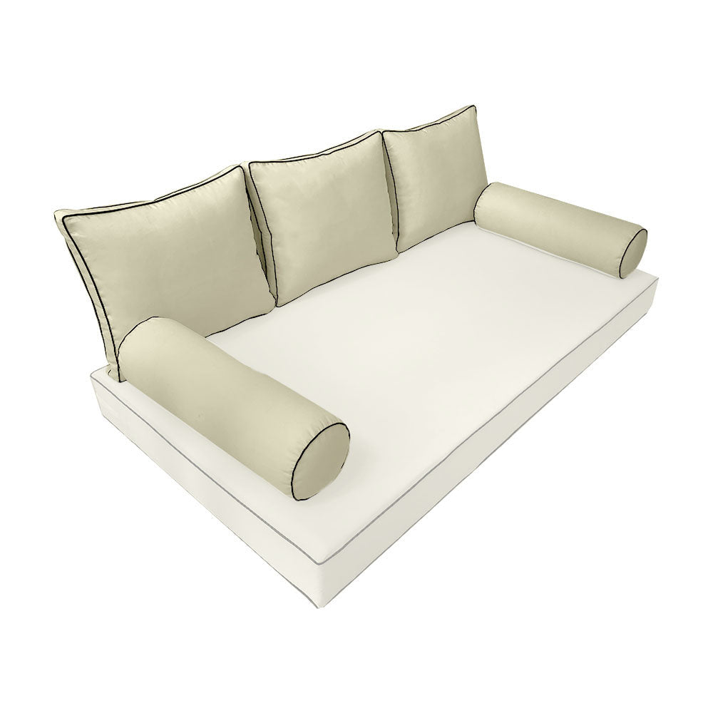 STYLE 3 Pillow & Bolster Cushion for Outdoor Indoor Daybed Porch Swing Bed Queen Size Contrast Trim AD005 | COVERS ONLY |