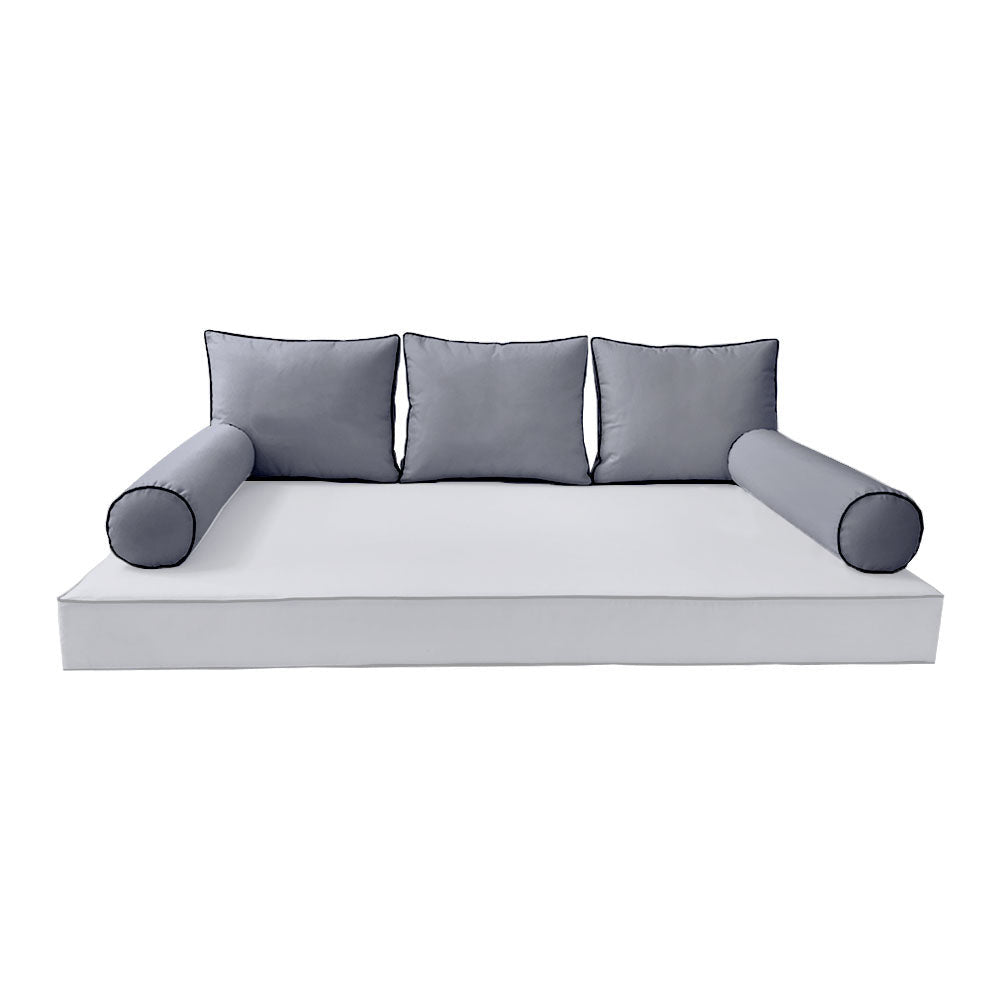 STYLE 3 Pillow & Bolster Cushion for Outdoor Indoor Daybed Porch Swing Bed Twin Size Contrast Trim AD001 | COVERS ONLY |