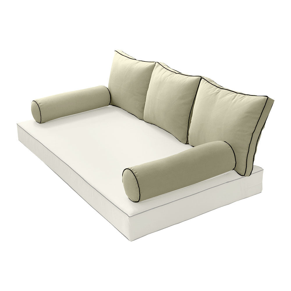 STYLE 3 Pillow & Bolster Cushion for Outdoor Indoor Daybed Porch Swing Bed Twin Size Contrast Trim AD005 | COVERS ONLY |