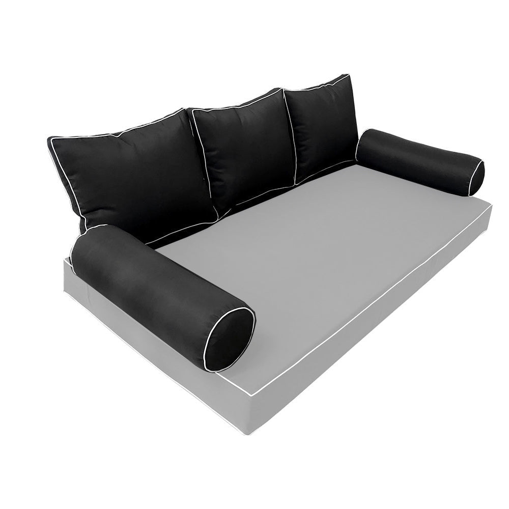 STYLE 3 Pillow & Bolster Cushion for Outdoor Indoor Daybed Porch Swing Bed Twin Size Contrast Trim AD109 | COVERS ONLY |