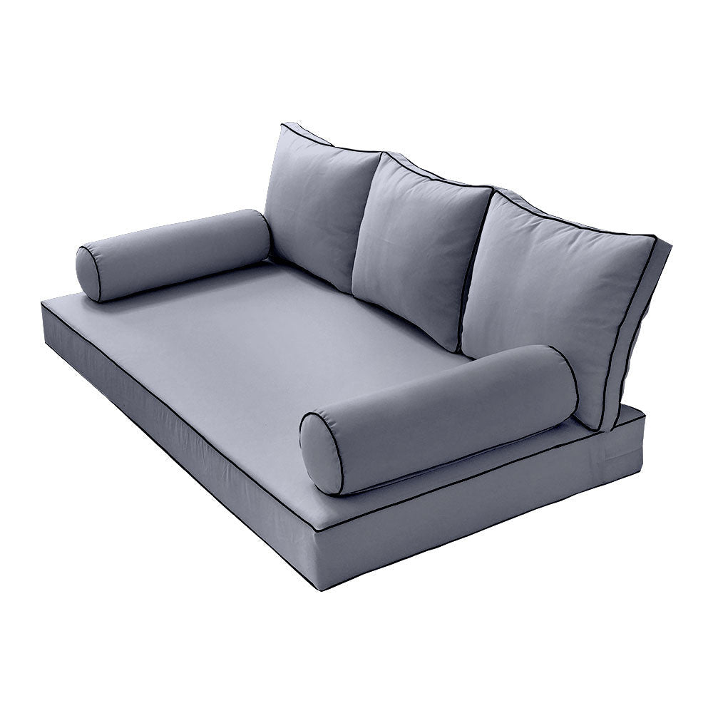 STYLE 3 - Mattress & Pillow Bolster Cushion for Outdoor Indoor Daybed Porch Swing Bed Contrast Trim Twin Size AD001 | COVERS ONLY |