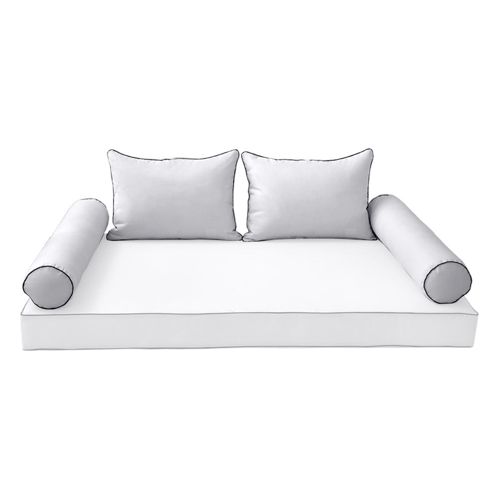 STYLE 4 Pillow & Bolster Cushion for Outdoor Indoor Daybed Porch Swing Bed Full Size Contrast Trim AD105 | COVERS ONLY |