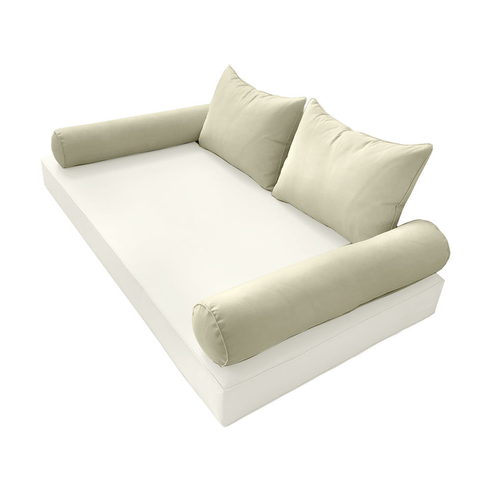 STYLE 4 Pillow & Bolster Cushion for Outdoor Indoor Daybed Porch Swing Bed Full Size Piped Trim AD005 | COVERS ONLY |
