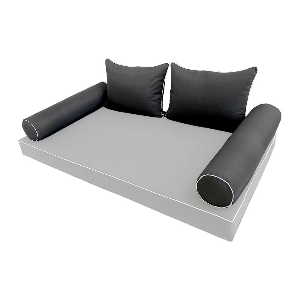 STYLE 4 Pillow & Bolster Cushion for Outdoor Indoor Daybed Porch Swing Bed Queen Size Contrast Trim AD003 | COVERS ONLY |