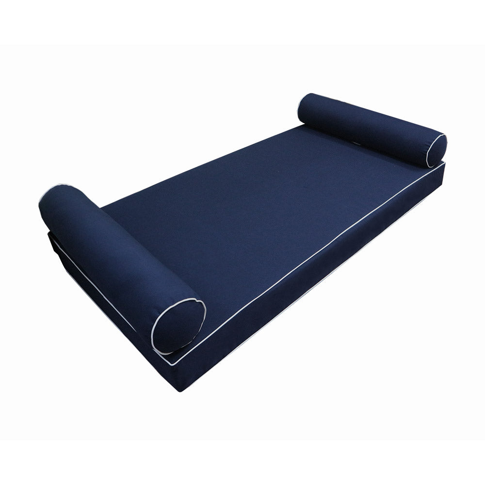 STYLE 5 - Mattress & Pillow Bolster for Outdoor Indoor Daybed Porch Swing Bed Contrast Trim Queen Size AD101 | COVERS ONLY |